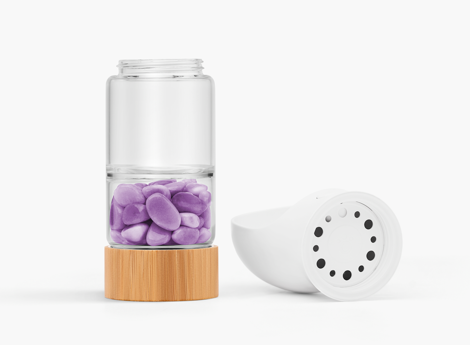 💎 أناقة الجمشت: اغمر ذاتك بجمال الجمشت الخالد، فهو كريستال مشهور بخصائصه المهدئة والمتوازنة. قنيتنا المائية المتألقة بالكريستال ليست مجرد قنينة مياه؛ إنها رفيق العناية بالصحة والعافية.