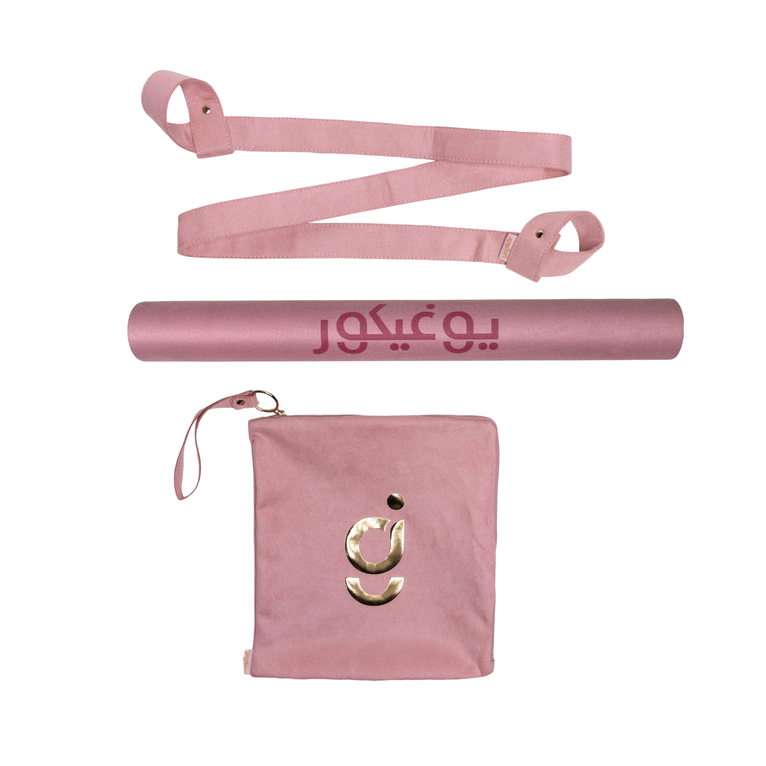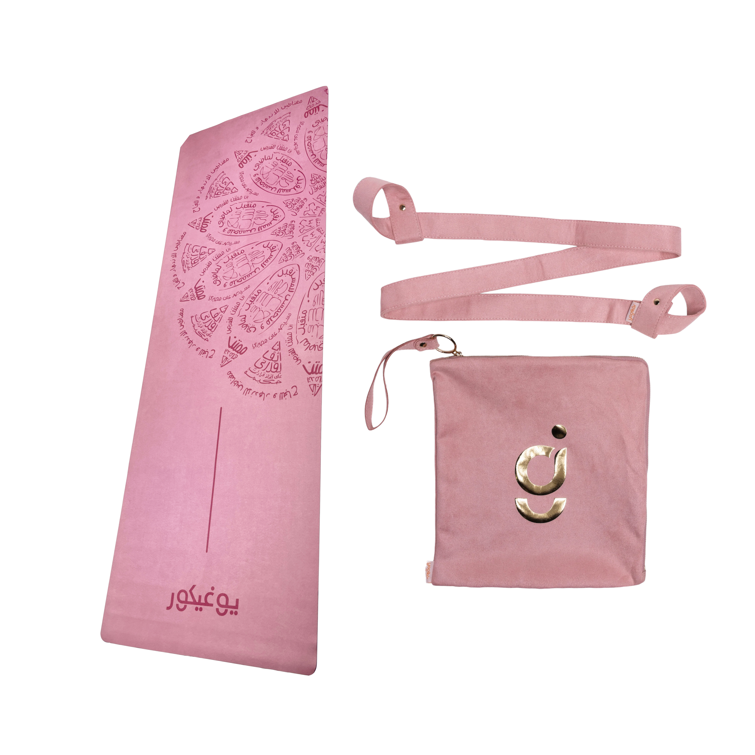 Travel Yoga Mat Set - Pink Arabic Mandala